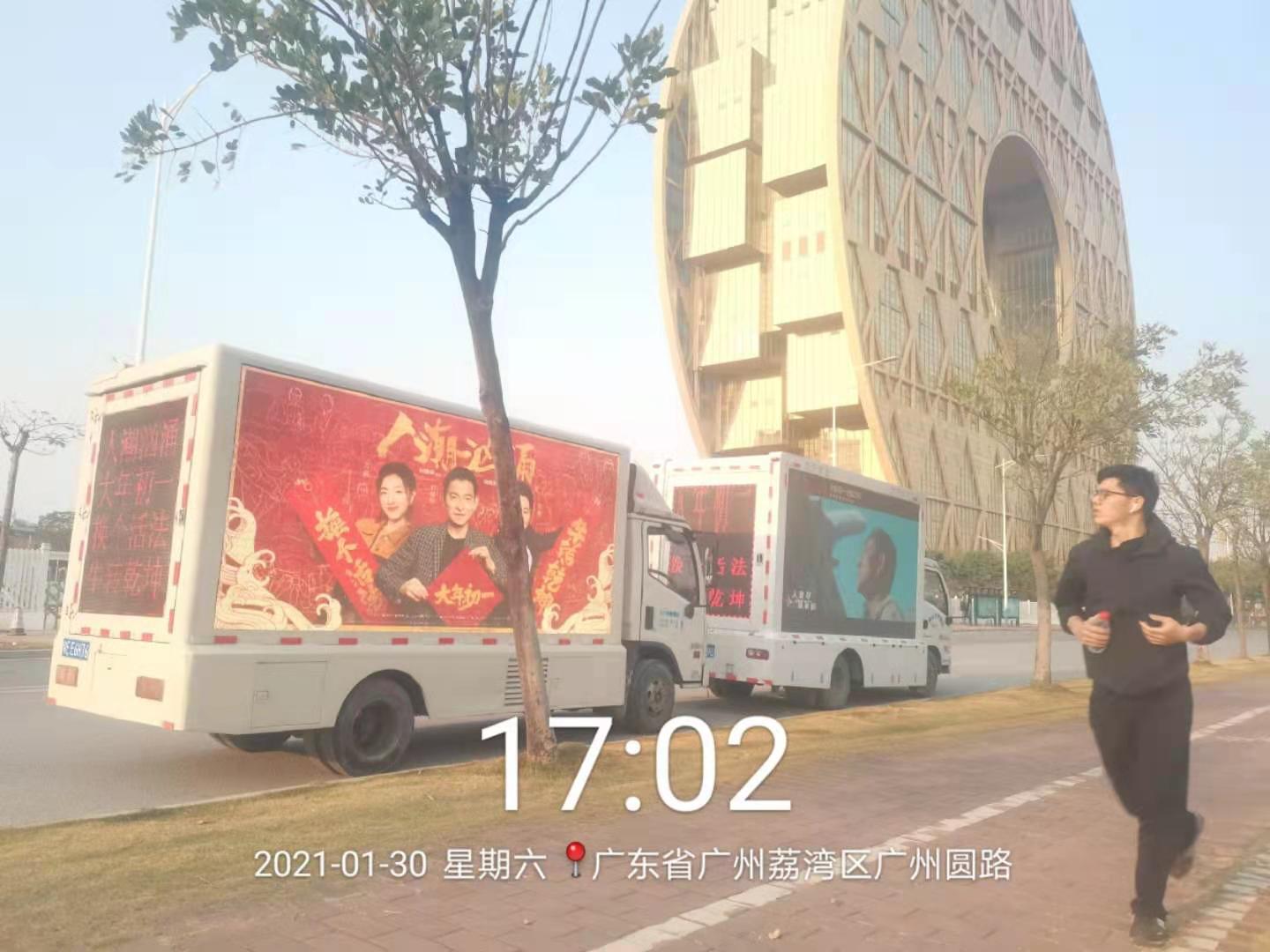此次《人潮洶涌》電影小篷車百城巡演活動的執(zhí)行方--臺州景川電子科技有限公司在接到任務(wù)后,第一時間組建了近200人的運營團隊,集結(jié)150臺小篷車化身為“人潮洶涌電影應(yīng)援車”。在活動開始前一天,150臺小篷車和150個運營司機均已在指定城市就位,所有播放物料跟巡展路線也提前規(guī)劃完畢;兩天活動,小篷車巡展時長基本比預(yù)定時長要長,每天提前就開啟預(yù)熱,延遲結(jié)束時間。
