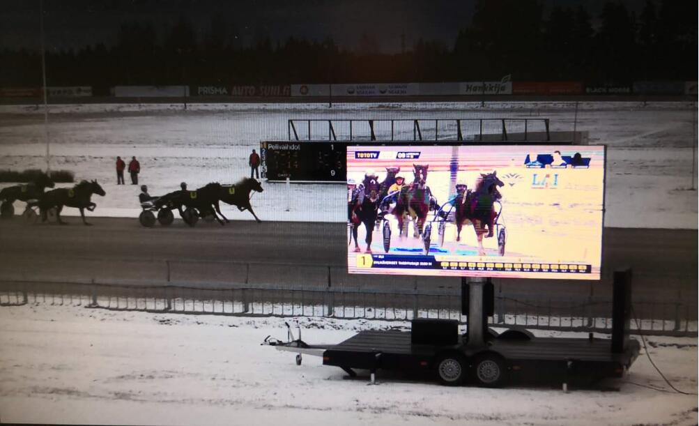 芬蘭是圣誕老人的故鄉(xiāng),位于歐洲北部,有“千湖之國”之稱。芬蘭的賽馬場(chǎng)是集馬術(shù)運(yùn)動(dòng)、健身、休閑于一體,是人們休閑娛樂的重要場(chǎng)所之一。賽馬場(chǎng)內(nèi)會(huì)有大量的人流聚集,需要將賽馬場(chǎng)內(nèi)的信息第一時(shí)間準(zhǔn)確地傳遞給游客。針對(duì)賽馬場(chǎng)人流量大、信息反饋量大等特點(diǎn),LED廣告拖車成為其中重要的信息發(fā)布平臺(tái),承擔(dān)起疏導(dǎo)客流和發(fā)布馬術(shù)賽事等服務(wù)信息的重任,也成為了賽馬場(chǎng)一道“彈眼落睛”的風(fēng)景線。