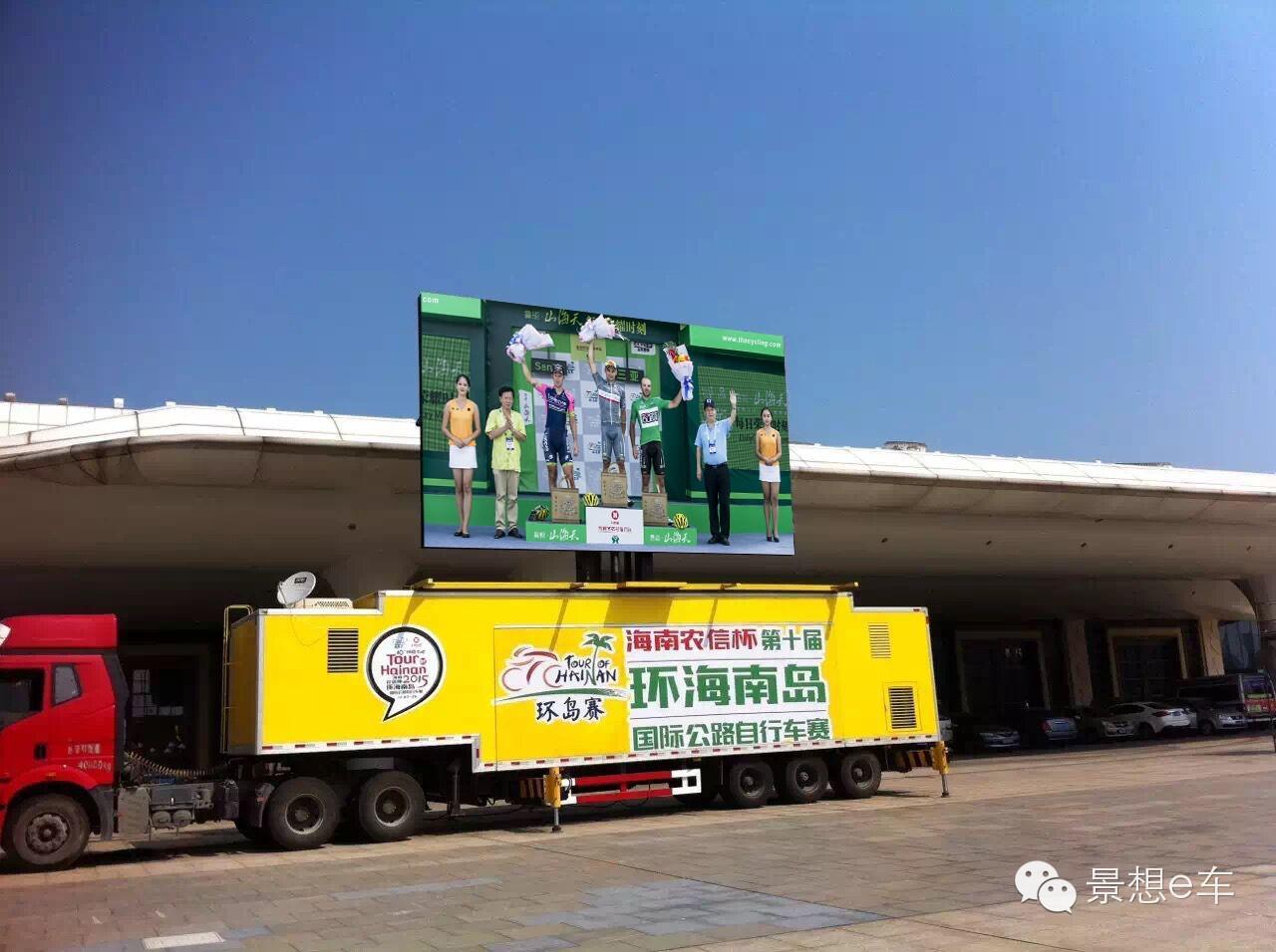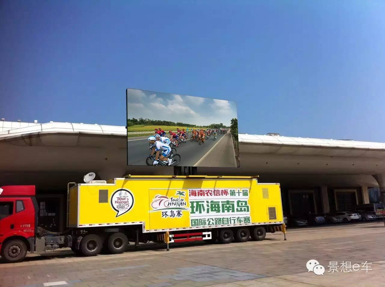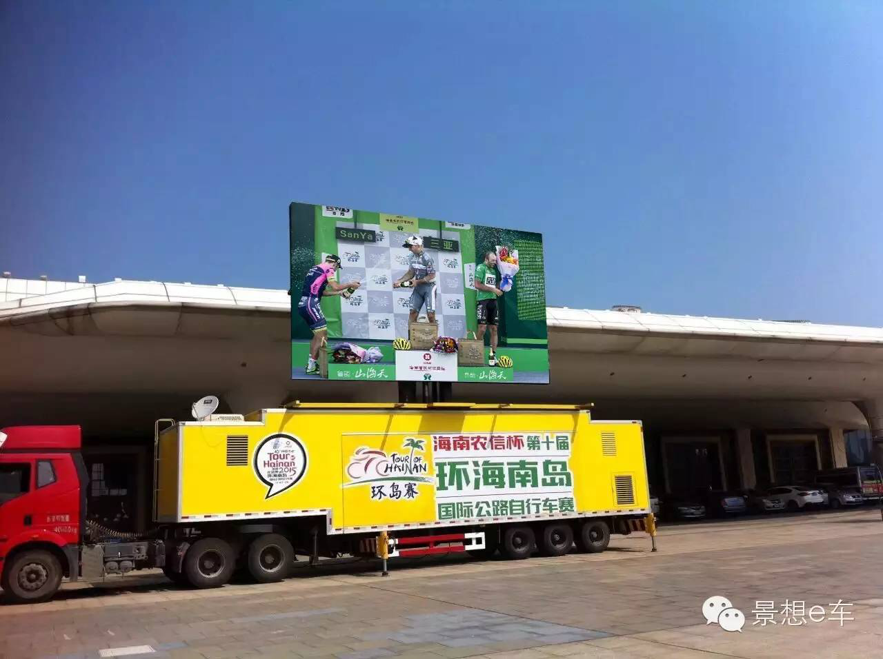 這次值得回味的不僅僅是精彩的賽事,努力奮斗的運動員還有我們上海景想提供的大型LED集裝箱式廣告車E-C40轉播賽事帶來的精彩效果。在現(xiàn)場LED戶外直播車前,圍滿了觀賽的群眾。這次的賽事備受關注,央視5套等各衛(wèi)視直播了環(huán)島賽,很多人坐在家里看到了比賽,可讓大家想不到的是,在現(xiàn)場為車手們加油的觀眾,可以通過LED戶外直播車也看到了比賽。這款車屏幕四十多平方米,可以360旋轉。這車的車廂長度為13米,屏幕升起有三層樓之高,并自帶發(fā)電機,自動化程度非常高。讓我們期待下次景想還能為我們帶來哪些驚喜!