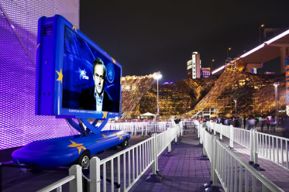 世博會歐盟館門前,一臺藍(lán)底黃星涂裝的LED掛廣告車作為游客游覽歐盟館的“體驗(yàn)”,已然成為了一道“彈眼落睛”的風(fēng)景線。