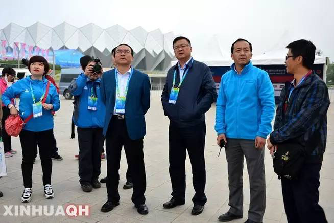 7月5日,2015第十四屆“青海農(nóng)信杯”環(huán)青海湖國(guó)際公路自行車(chē)賽第一賽段比賽開(kāi)賽前,環(huán)湖賽組委會(huì)副主任、青海省體育局局長(zhǎng)張寧、副局長(zhǎng)楊海寧一行前往環(huán)湖賽第一賽段頒獎(jiǎng)區(qū)檢查指導(dǎo)工作,為“高大上”的頒獎(jiǎng)區(qū)點(diǎn)贊。