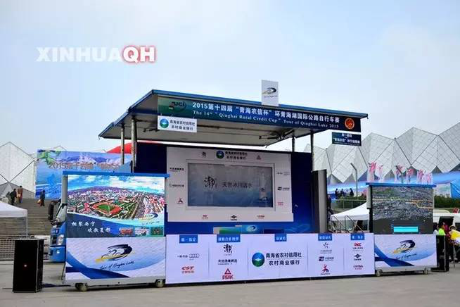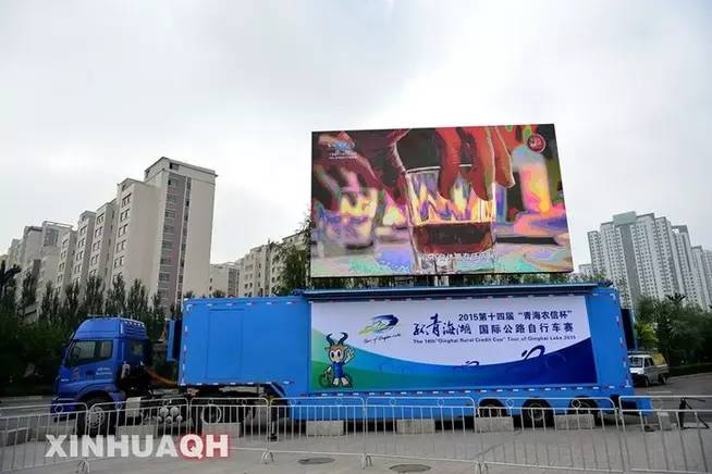 本屆環(huán)湖賽采購(gòu)的LED戶(hù)外宣傳車(chē)是目前國(guó)內(nèi)的一輛清晰度較高、屏幕較大的戶(hù)外廣告車(chē)。該車(chē)車(chē)廂長(zhǎng)度為13米,屏幕升起,全車(chē)有三層樓之高,自動(dòng)化程度非常高。LED戶(hù)外宣傳車(chē)是目前國(guó)內(nèi)的一輛清晰度較高、屏幕較大的戶(hù)外廣告車(chē)(直播車(chē))。該車(chē)由國(guó)內(nèi)LED廣告車(chē)的創(chuàng)始者“上海景想”公司打造,具有防水防雨防風(fēng)沙的效果,抗風(fēng)能力可達(dá)到八級(jí),并自帶發(fā)電機(jī)。超大屏幕為43平方米,采用戶(hù)外P6LED顯示屏,大屏從車(chē)廂頂部升起后可以翻轉(zhuǎn)180度折疊成一塊超大屏幕,翻轉(zhuǎn)到位后可作360度旋轉(zhuǎn)。這輛先進(jìn)的戶(hù)外廣告車(chē)的推出,為環(huán)湖賽及青海體育賽事的宣傳推廣,又增添了“利器”
