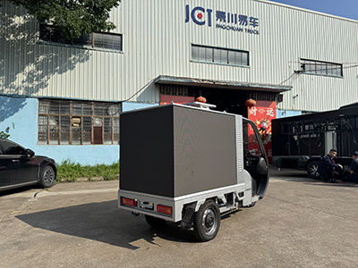 再者,傳播范圍廣泛也是其顯著優(yōu)勢(shì)。三輪車本身就具有靈活穿梭的特點(diǎn),搭載 LED 屏幕后,能夠深入城市的各個(gè)角落,無論是商業(yè)街、學(xué)校周邊,還是社區(qū)、鄉(xiāng)鎮(zhèn),都能將廣告信息精準(zhǔn)送達(dá)。而且,LED 屏三輪車宣傳車在移動(dòng)過程中,就像一個(gè)流動(dòng)的廣告平臺(tái),不斷擴(kuò)大廣告的覆蓋范圍,讓更多的人接觸到廣告內(nèi)容,有效提升品牌知名度和影響力。