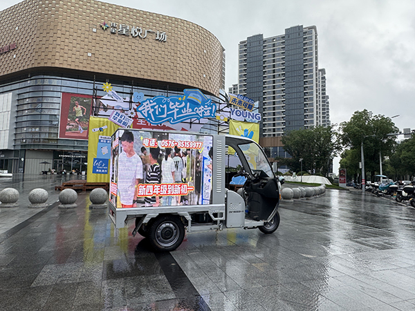 三輪車宣傳車體積小巧,能夠輕松穿行于狹窄街巷、鄉(xiāng)間小道及人流密集區(qū)域,突破傳統(tǒng)廣告車輛的空間限制。例如,LED屏三輪車改造為反詐宣傳車,通過“小喇叭+屏幕播放”的形式,實現(xiàn)了反詐知識傳播,覆蓋了傳統(tǒng)廣播難以觸達的老年群體和偏遠區(qū)域。這種機動性使其在緊急宣傳(如疫情防控、交通安全)中表現(xiàn)尤為突出。此外,某社區(qū)通過LED屏三輪車宣傳車開展交通安全教育,結(jié)合“一停二看三通過”口訣,有效提升了居民的安全意識。