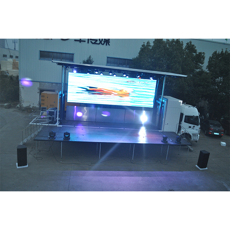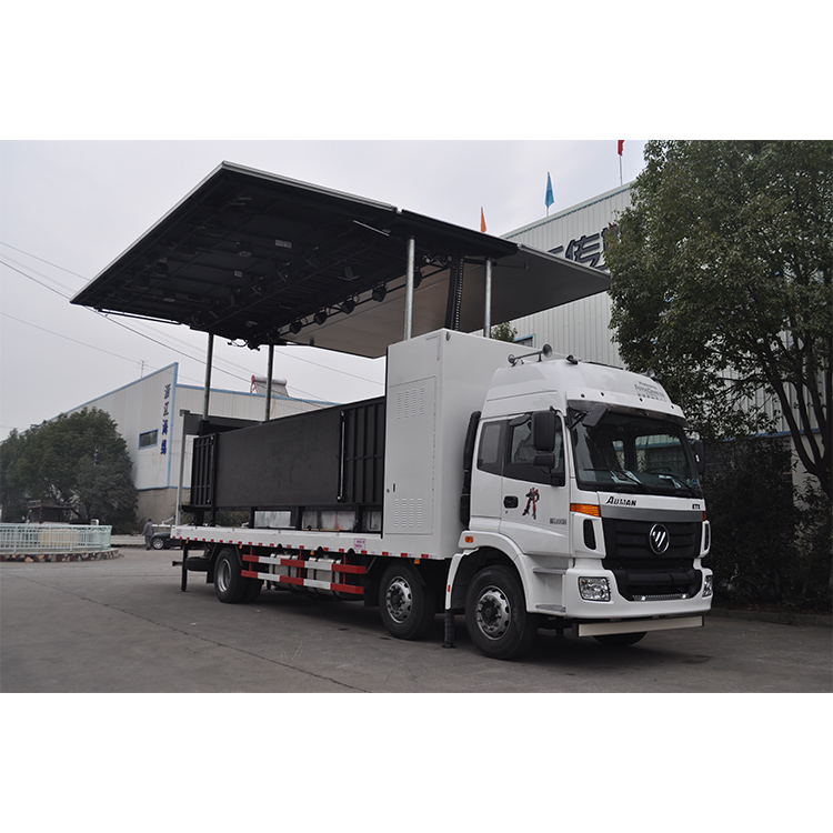 E-WT9600流動(dòng)舞臺(tái)車的設(shè)計(jì)獨(dú)特,它集舞臺(tái)、音響、燈光等多種功能于一體。整車尺寸為:11995×2550×3870mm,車上配備的戶外LED大屏:7360×2400mm,不僅顯示效果出眾,而且非常適合各種戶外演出和活動(dòng)。10000×2400mm超大全自動(dòng)液壓舞臺(tái)可以在短時(shí)間內(nèi)迅速展開,形成一個(gè)平整、穩(wěn)定的演出平臺(tái)。同時(shí),舞臺(tái)音響和燈光設(shè)備,確保每場(chǎng)演出效果。