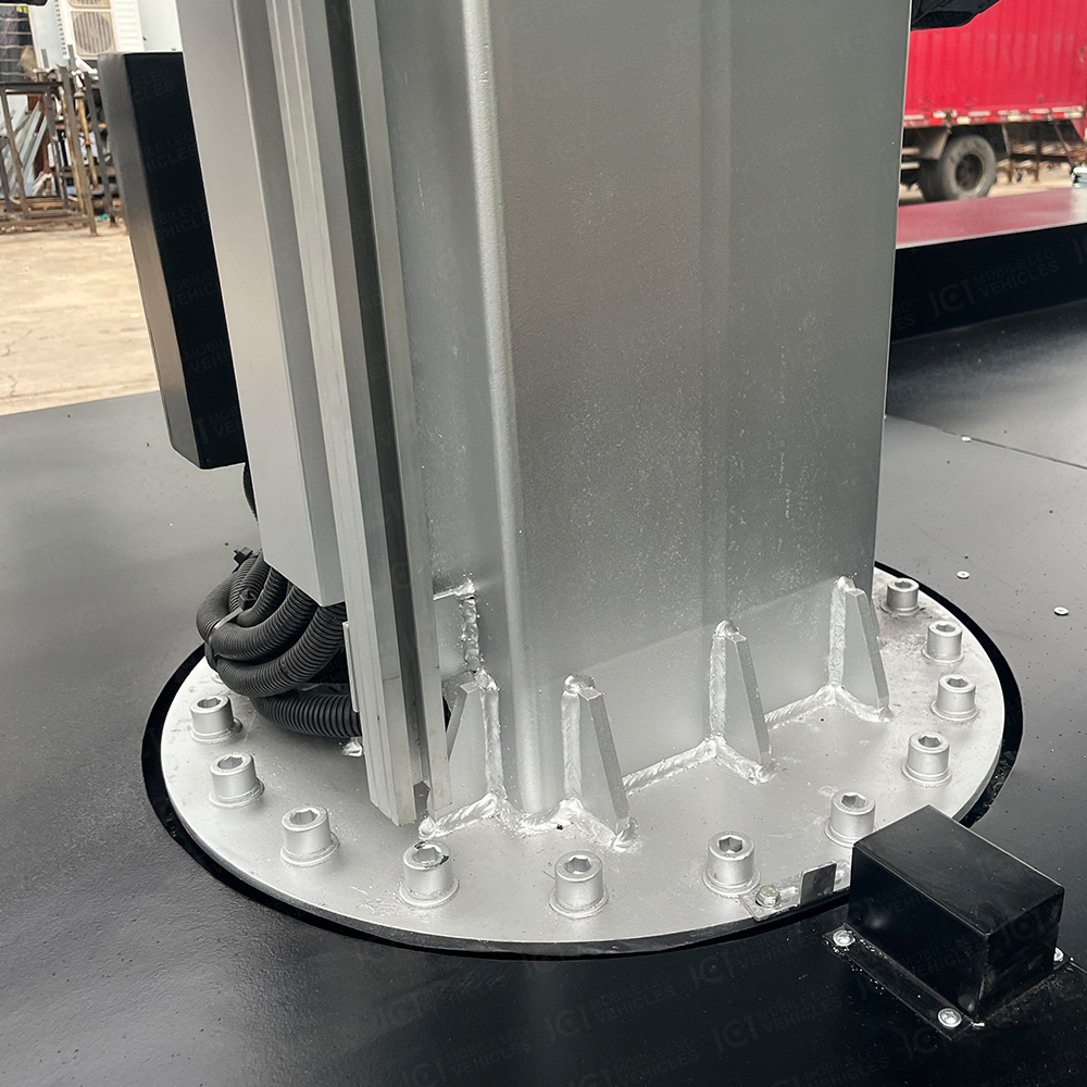 EF16型育賽事LED宣傳拖車(chē)的設(shè)計(jì)新穎時(shí)尚,以黑色為主調(diào),散發(fā)著強(qiáng)烈的科技感。它不僅集支撐、液壓升降、旋轉(zhuǎn)等多項(xiàng)功能于一體,更為客戶和目標(biāo)觀眾帶來(lái)了震撼的感官盛宴。