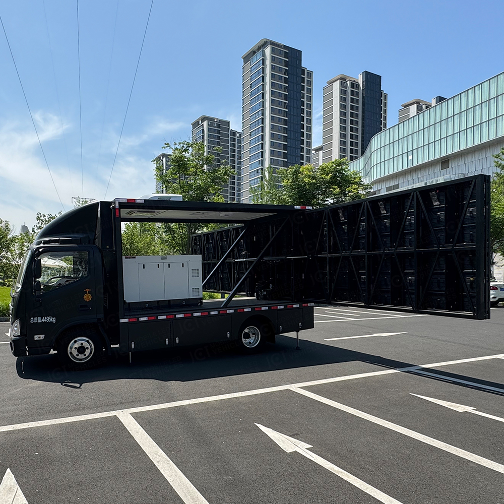 通過(guò)雙側(cè)液壓180°展開與尾部智能拼接技術(shù), 僅需幾分鐘即可把卡車瞬間“變身”為18.5㎡的戶外高清大屏,抓住每一秒黃金曝光時(shí)間,無(wú)需額外搭建,省時(shí)省人!