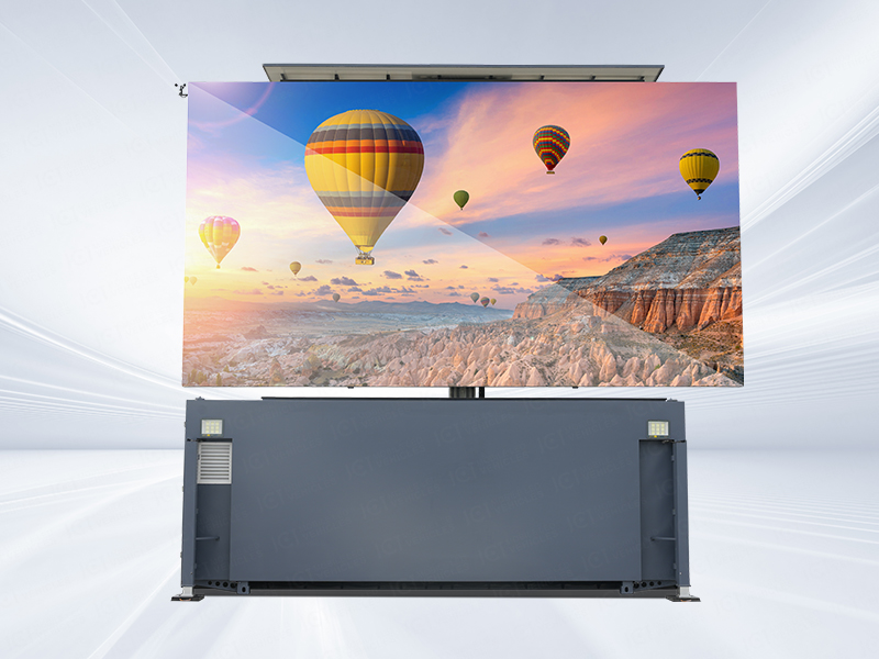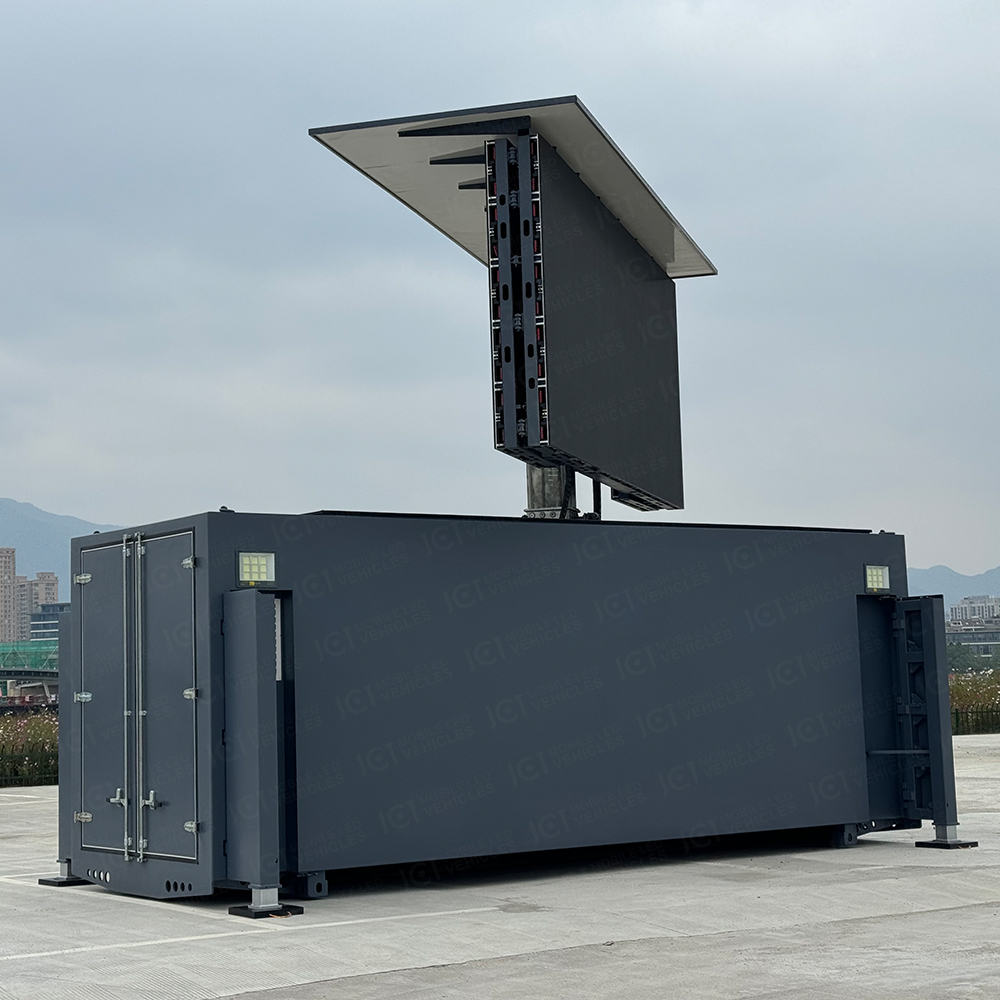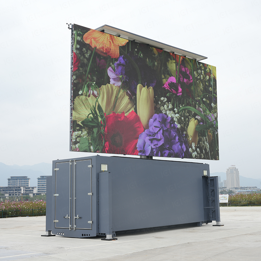 MBD-45S-led container型移動LED折疊屏集裝箱的核心亮點在于其45平米的超大顯示面積,屏幕整體展開后尺寸為:9000*5000mm,足以滿足各類大型活動的需求。采用戶外LED顯示屏技術(shù),色彩表現(xiàn)力強,對比度高,即使在強光環(huán)境下也能保證清晰、明亮的顯示效果。想象一下,一場精心籌備的發(fā)布會,一塊巨大的LED屏幕從場地中間緩緩升起,宛如科幻電影中的未來舞臺,一鍵液壓升降,強大而有力,瞬間抓住所有人的眼球!