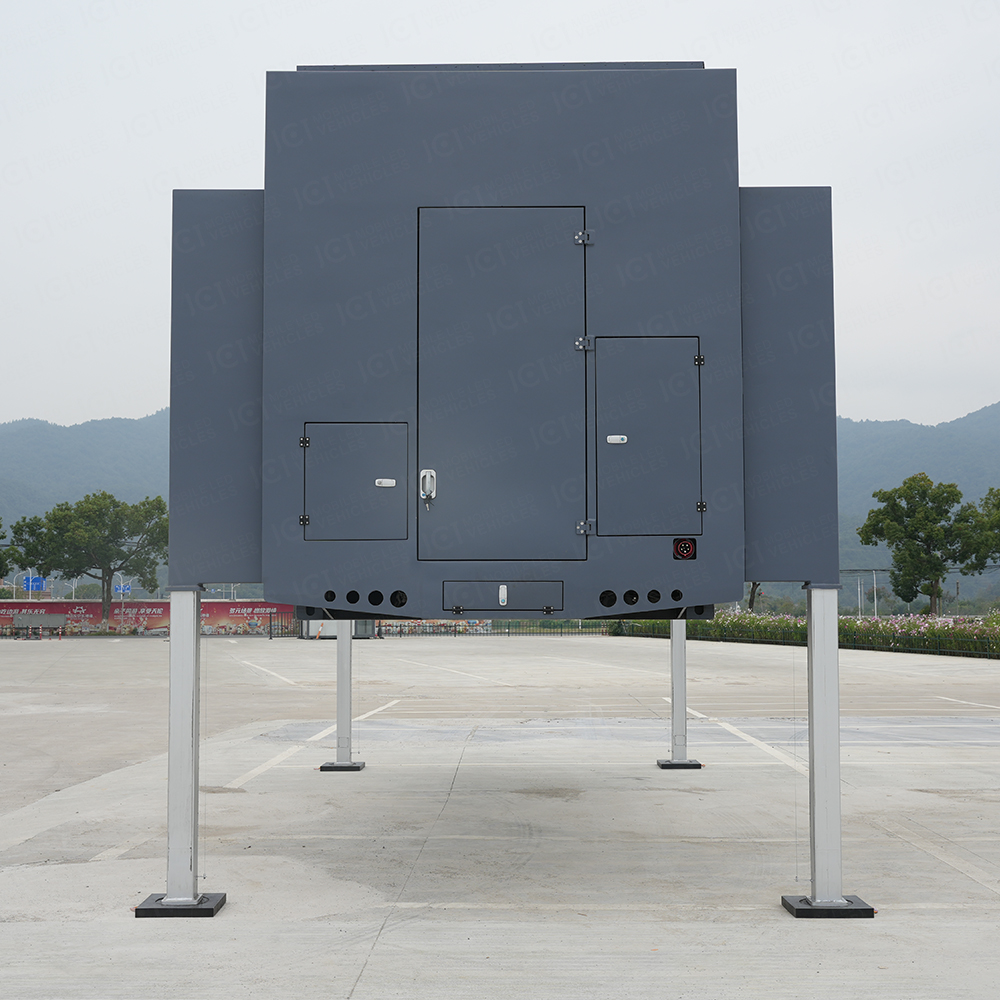 這款移動LED折疊顯示屏將所有顯示設(shè)備收攏在一個尺寸為8000*2400*2600mm的封閉式箱體內(nèi),箱體配置了4只液壓支撐腿,支撐腿升降行程可達1500mm,需要移動時,只需使用一臺平板卡車,箱體的4只液壓支撐腿可以讓設(shè)備輕松安裝在平板卡車上或從平板卡車卸下,其可移動性設(shè)計使得設(shè)備能夠適應(yīng)不同場地,無需復(fù)雜安裝,大大節(jié)省了時間與成本。
