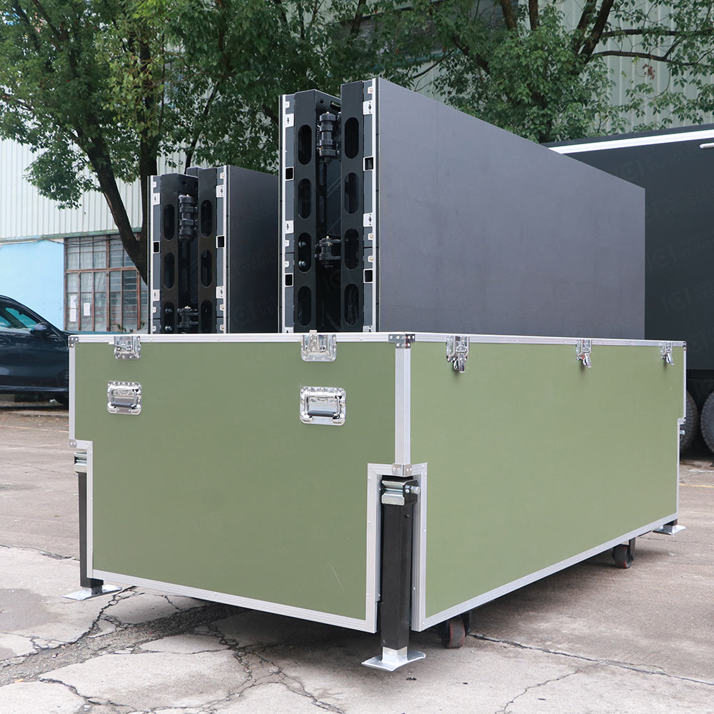 PFC-8M型8㎡便捷式LED折疊屏是一種集成了LED顯示屏和航空箱的產(chǎn)品,其外觀設計緊湊,結(jié)構(gòu)堅固,便于攜帶和運輸。JCT新推出的一款型號為PFC-8M的便捷式LED折疊屏集成了液壓升降、液壓旋轉(zhuǎn)和液壓折疊技術,總重量為600KG。只需簡單的按鈕操作,便可將展開后面積為3600mm*2025mm的LED屏幕折疊收攏在2500×1000×1800mm的航空箱內(nèi),使日常運輸和移動更加便捷。