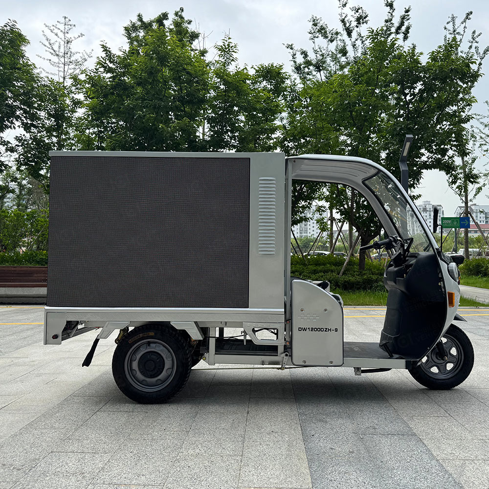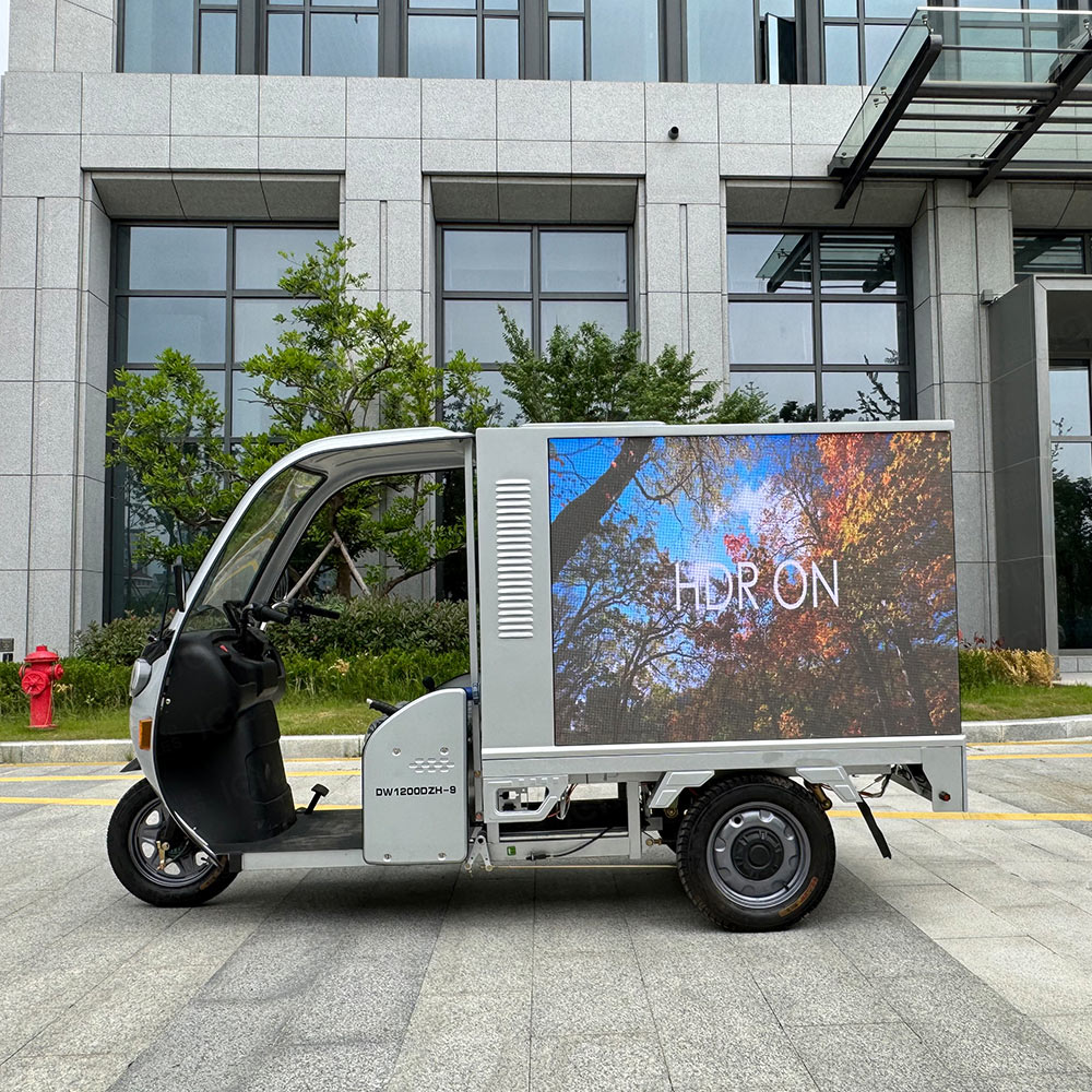 E3W1500 三輪 3D 宣傳車設(shè)計的多塊高清全彩顯示屏的組合,打造出立體環(huán)繞的宣傳效果,能夠全方位展示宣傳內(nèi)容,吸引不同方向人群的注意力。戶外高清全彩LED屏幕顯示技術(shù)保證了畫面的高清晰度和高亮度,即使在戶外強光環(huán)境下,也能清晰顯示,確保宣傳信息準確傳達。